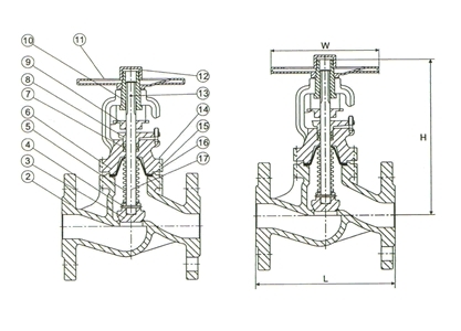 WJ41H、WJ41W 型 PN16~PN40 波紋管截止閥結(jié)構(gòu):(圖)