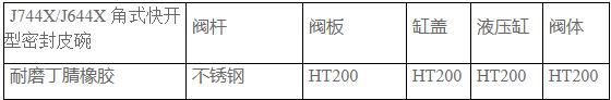 J744X -10 J644X-10液 氣動(dòng)活塞角式快開排泥閥零部件材料表: