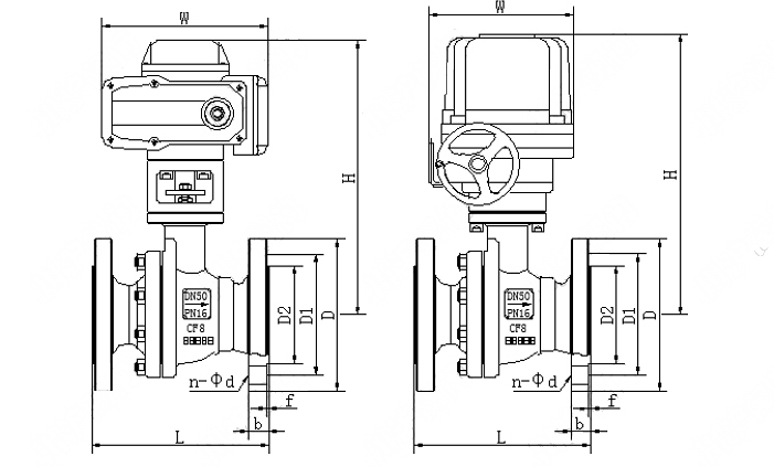 是由電動(dòng)執(zhí)行機(jī)構(gòu)和O型襯氟球閥組成。閥體內(nèi)腔及球芯均采用高壓注塑工藝襯有耐腐蝕、耐老化的聚全氟乙炳烯,故具有可靠的耐腐蝕性和密封性。電動(dòng)襯氟球閥主要用于對(duì)生產(chǎn)過(guò)程中酸堿等強(qiáng)腐蝕介質(zhì)的調(diào)節(jié)或切斷。電動(dòng)執(zhí)行機(jī)構(gòu)內(nèi)置伺服系統(tǒng),無(wú)須另配伺服放大器,輸入4-20mA信號(hào)及220VAC/380V電源即可控制運(yùn)轉(zhuǎn)。電動(dòng)襯氟球閥、襯四氟電動(dòng)球閥具有連線(xiàn)簡(jiǎn)單,結(jié)構(gòu)緊湊、尺寸小、重量輕、阻力小、動(dòng)作穩(wěn)定可靠等優(yōu)點(diǎn)。