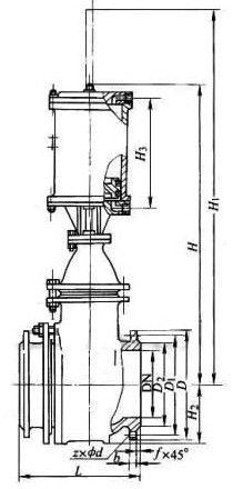 氣動、法蘭連接、明桿楔式剛性單閘板,閥座密封面材料為碳素鋼堆焊鐵基合金,公稱壓力 PN16~PN63,閥體材料為碳素鋼的排渣閘閥。