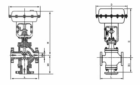 ZJHQ氣動(dòng)三通調(diào)節(jié)閥外觀尺寸:
