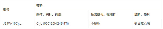 J21W-16C6L 型外螺紋不銹鋼截止閥零部件材料表