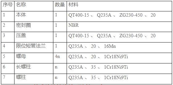 SSJB-10壓蓋式伸縮接頭零部件材料表: