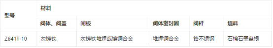 Z641T-10 型氣動(dòng)楔式閘閥零部件材料表:
