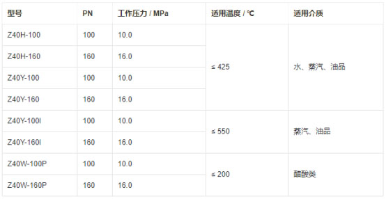 手動、法蘭連接、明桿楔式彈性閘板,閥座密封面材料為不銹鋼、硬質(zhì)合金,工作壓力10.0~16.0MPa,閥體材料為碳素鋼(Z40H-100~160 Z40Y-100~160)、鉻鉬鋼(Z40Y-100I~160I)、不銹鋼(Z40W-100P~160P)的閘閥。