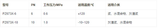 PZ673X-6、PZ673X-10 型氣動(dòng)漿液閥性能: