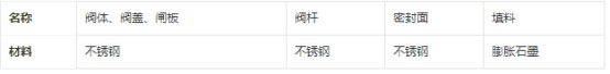 Z15W-16R、Z15W-16P 型不銹鋼閘閥零部件材料表: