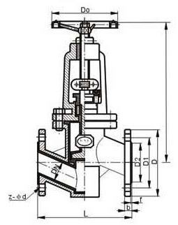 J41F4-16、J41F46-16 型襯氟截止閥外觀尺寸