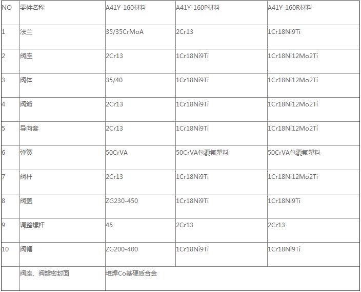 A27W彈簧微啟式安全閥零部件材料表:
