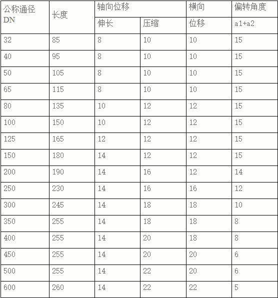KXT -10 16橡膠軟接頭性能: