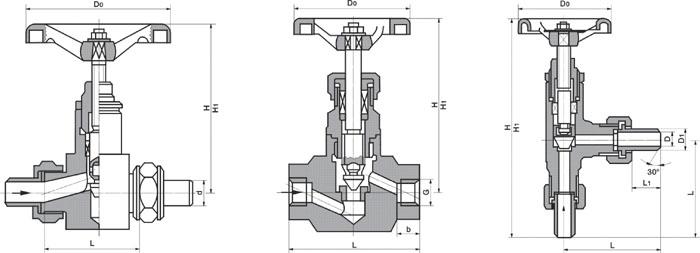J13、J23 型儀表針形截止閥外觀尺寸