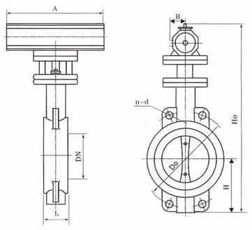 D671X-10 16氣動(dòng)對(duì)夾蝶閥外觀尺寸: